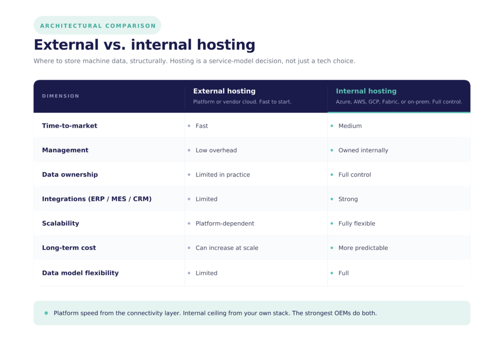 Internal hosting becomes relevant when machine data plays a structural role in operations, service, or commercial offerings.